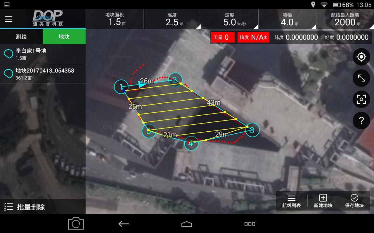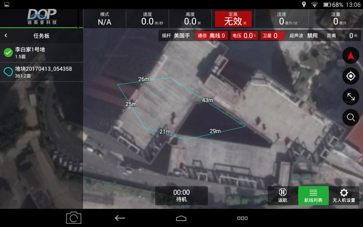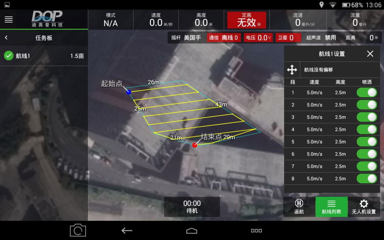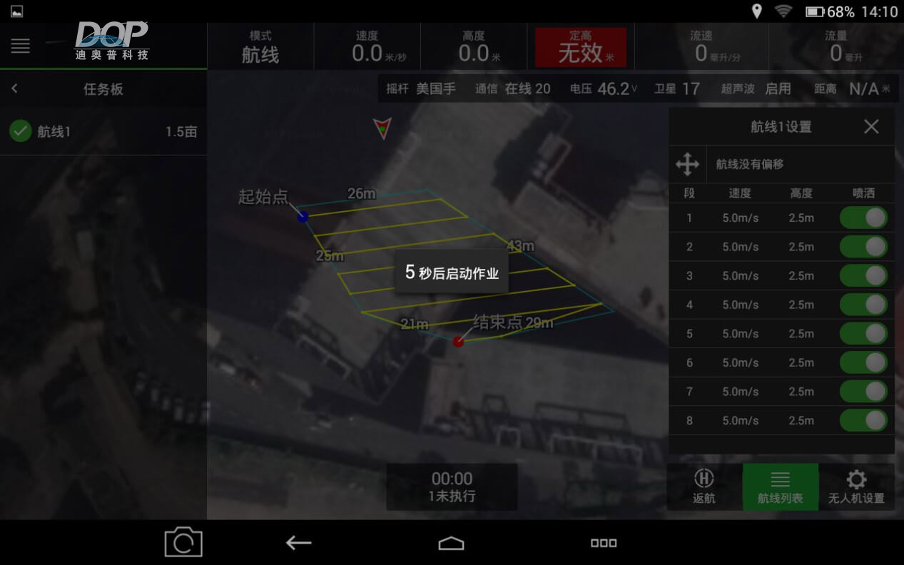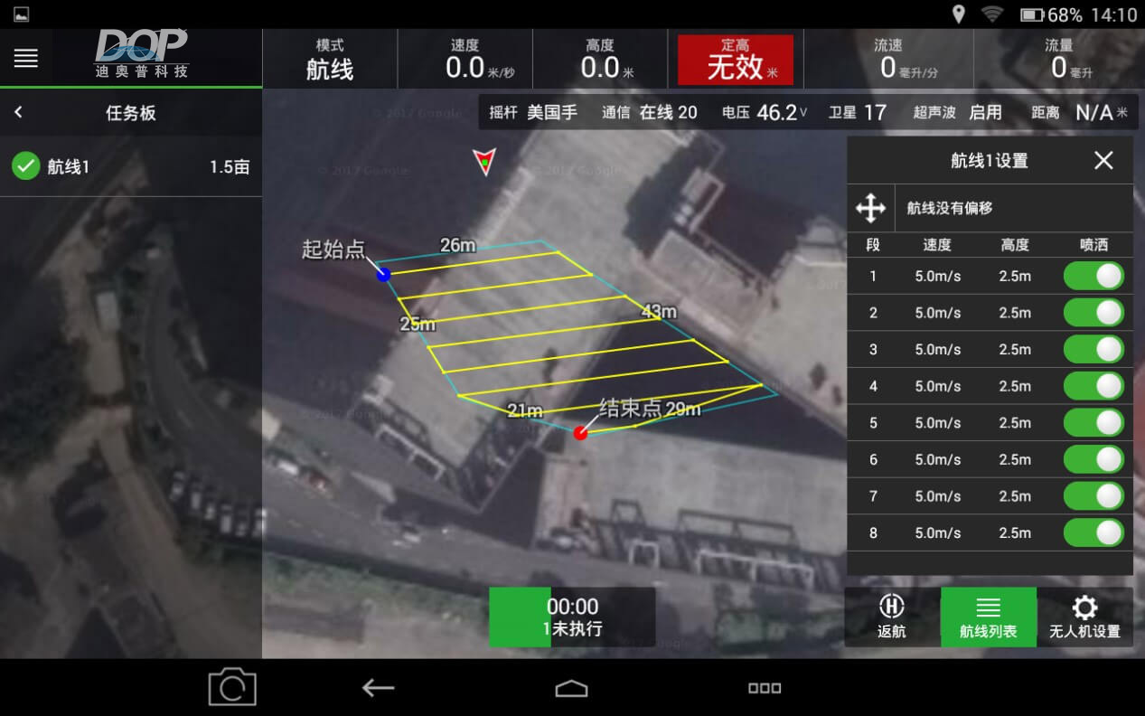 迪奥普农业植保无人机具备断点巡航功能,当无人机没药或则电力不足时,可自动记录和定位前次喷药断点,避免重喷漏喷对农作物的危害;针对农田中障碍物影响,该飞行器还具备障碍物自动报警、障避功能。