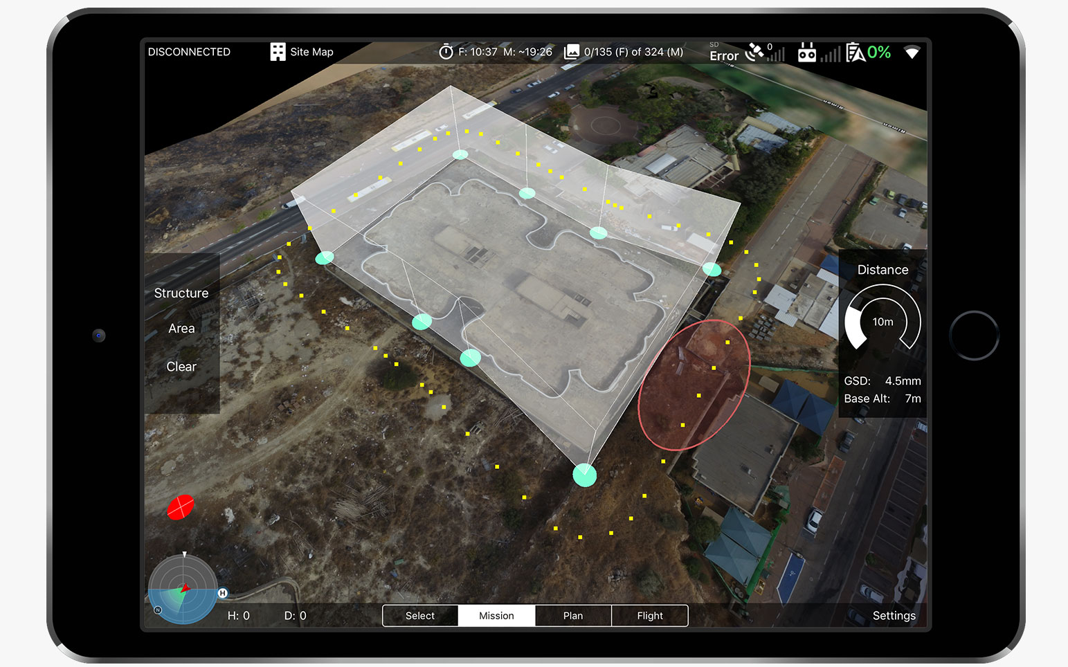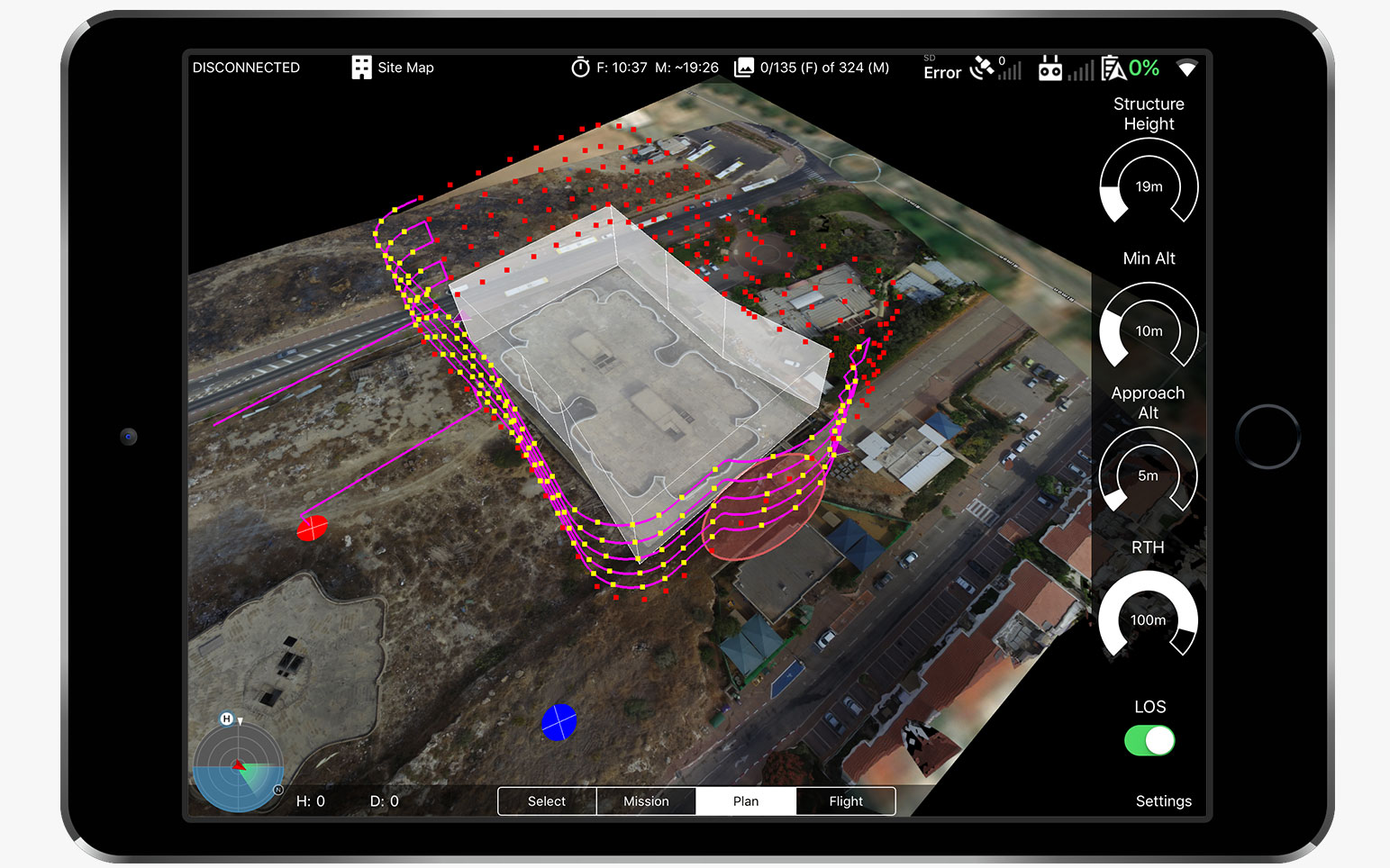 规划整个复杂的任务就像挖掘结构轮廓一样简单。自动生成最佳飞行路径,确保视觉视线(LOS)持续性,这可能是法规(FAA第107部分)和支持电池交换所要求的。无人机自动飞行低,靠近物体并绕过沿其路径识别的障碍物 - 精确捕捉场地的高分辨率图像。