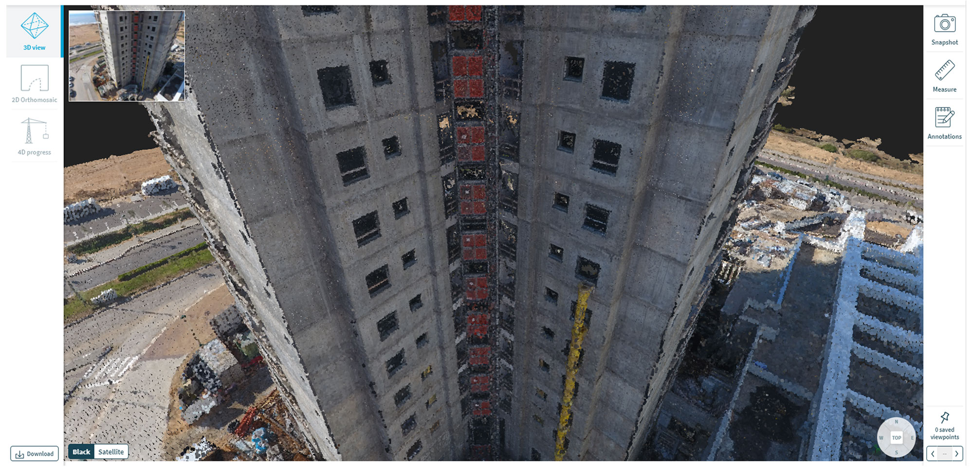 通过项目的数字逼真表示,SiteAware Viewer可以为您的构建过程添加见解和知识。SiteAware Cloud上的自动处理模型可通过任何设备上的标准Web浏览器使用SiteAware Viewer进行访问。