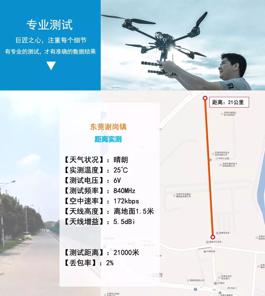 电台模块采用模块化单板嵌入式设计,应用于无人机与地面站之间的数传通信。工作频率范围:840MHz~845MHz,支持国内认证,兼容DJI Naza、wookong、A2等飞控系列。发射功率1W,通信距离大于20公里。