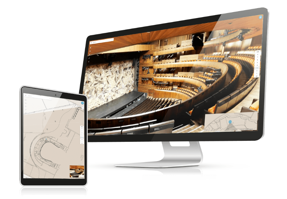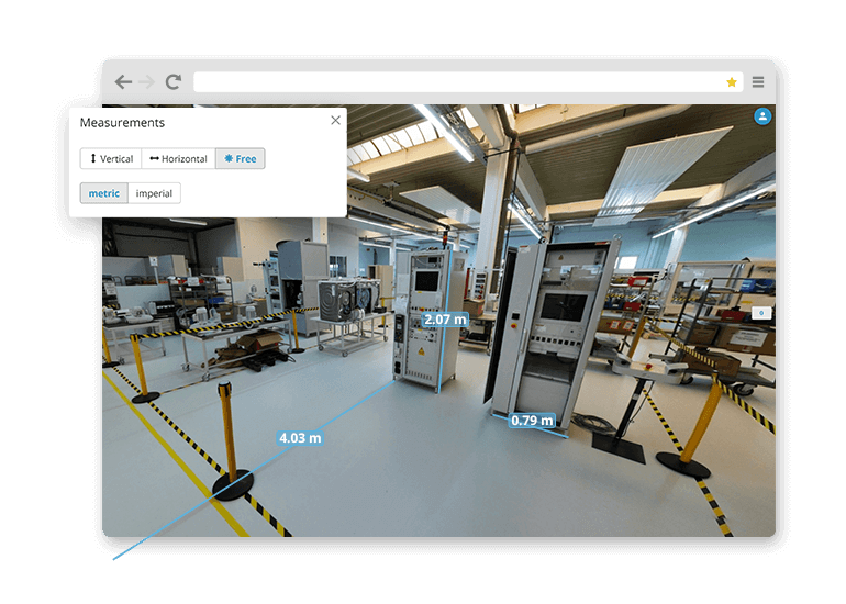 360°沉浸式图像不仅仅是数字图像。这些图像中的像素通过激光扫描得以丰富,这使得与扫描空间交互成为可能,就像您在现场一样,包括进行精确的点对点测量。