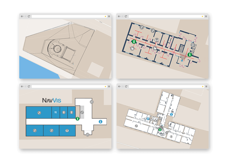 为您的客户提供全新的使用方式并与平面图交互。NavVis IndoorViewer自动生成基于AI的地图,以概述整个站点。上传已在照片编辑软件中设计的自定义地图或上传使用CAD软件创建的点云。
