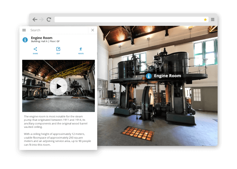 NavVis IndoorViewer具有易于使用,可扩展的内容管理系统,可为3D扫描添加地理标记信息和媒体。用户可以右键单击屏幕上的任意位置,以添加和查看此信息作为兴趣点。强大的搜索功能使用户可以轻松找到所需的信息。