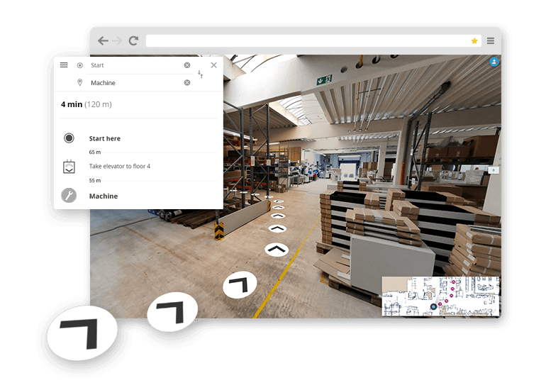 使用NavVis IndoorViewer虚拟路由工具智能扫描。IndoorViewer使用人工智能从用于创建导航图的扫描数据中提取路径信息。使用此功能,用户可以查看和搜索与对象和位置之间的路由信息。详细信息以沉浸式3D和地图显示。
