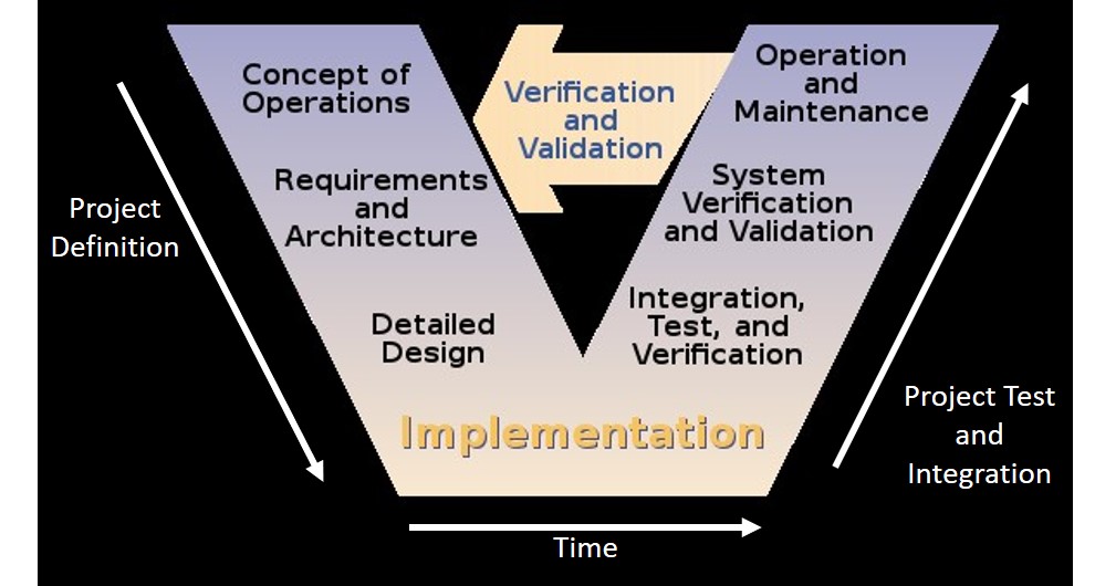 *项目定义的生命周期(概念设计),时间(实施),项目测试和集成(操作和维护),最后,验证和验证 - 来源:Clarus运营概念出版物编号FHWA-JPO-05-072联邦公路管理局,2005年