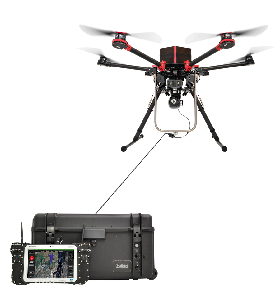 Air Mast由带有智能绞盘系统的地面模块和带有100米轻型系绳的无人机组成,包括用于电力和数据传输的电缆。无人机可以通过任何类型的发电机从地面供电,可以长时间停留在空中,而不依赖无人机电池。Air Mast采用UgCS的基于地面的命令控制软件运行,该软件在耐用的平板电脑上运行。