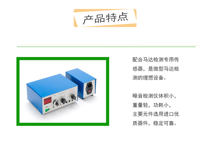 电机噪音是反映电机运行运转状况的一个重要因素。DC002A噪音检测仪就是通过对微型电机噪音信号的特殊处理,从而达到判断电机性能及故障的目的。