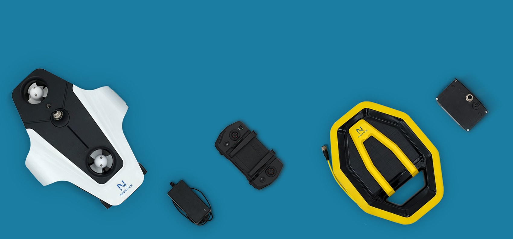 每个Navatics MITO预购都配有一个时尚的水下无人机,一个防水通信浮标,50米长的中性浮力系绳,可连接智能手机的遥控器,充电器和所有部件的充电线。