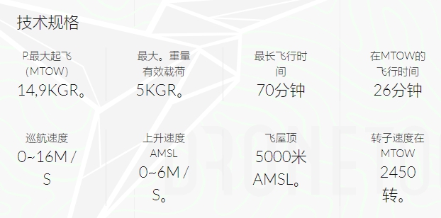 DronetoolsCóndor是一款西班牙制造的Mini级飞机,具有高效率的电厂,垂直起飞和高达5Kgr的装载能力。