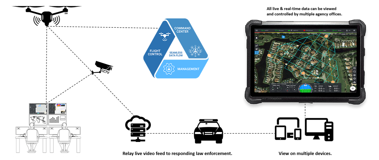 我们正在通过提供将CCTV摄像机与无人机平台集成的能力来改变游戏,数据直接发送到云端,以及远程操作员能够通过互联网在数千英里之外的许多不同位置控制无人机。