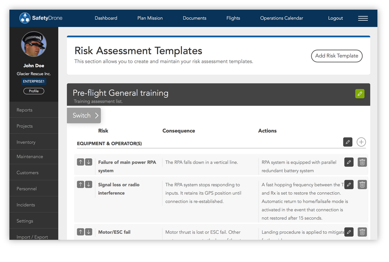 SafetyDrone可以创建自定义的前,后和维护清单以及风险评估表,以及将其他文档(授权表单,自定义文档等)上传到我们的平台。因此,无论您的工作流程如何,我们都能满足您的流程。此外,我们正在根据用户反馈建立一个不断增长的公共安全文档库。这些文件将包含在我们的数字图书馆中,供我们所有用户访问。