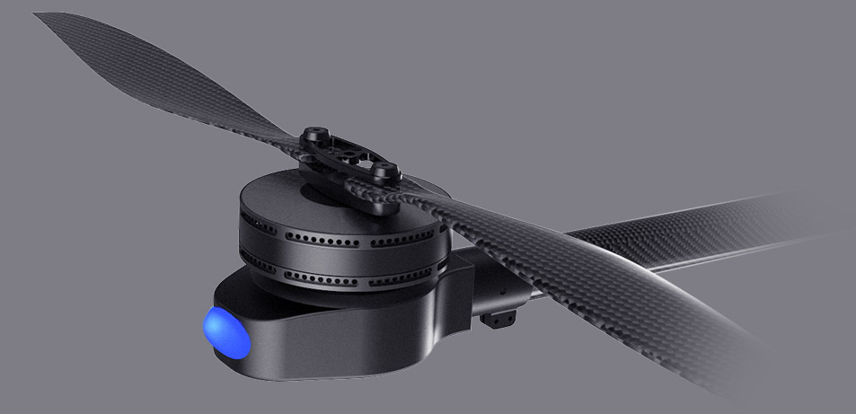 S1机身采用了可灵活收放的脚架结构,90度脚架翻折起降,360度镜头无死角。机臂通过锁扣折叠,解锁时,机臂可向下折叠,大大缩小了面积,提高了整机的运输性。