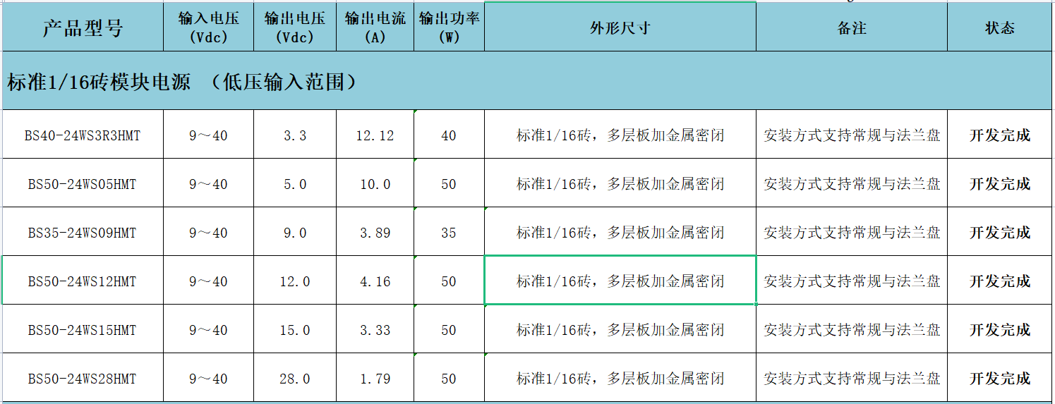 简介:BS50-24WS系列是DC-DC直流模块电源,9-40Vdc输入,输出功率50W;是工业标准十六分之一砖封装和引脚,外形结构为全密封式,功率密度高,满足GJB181B。