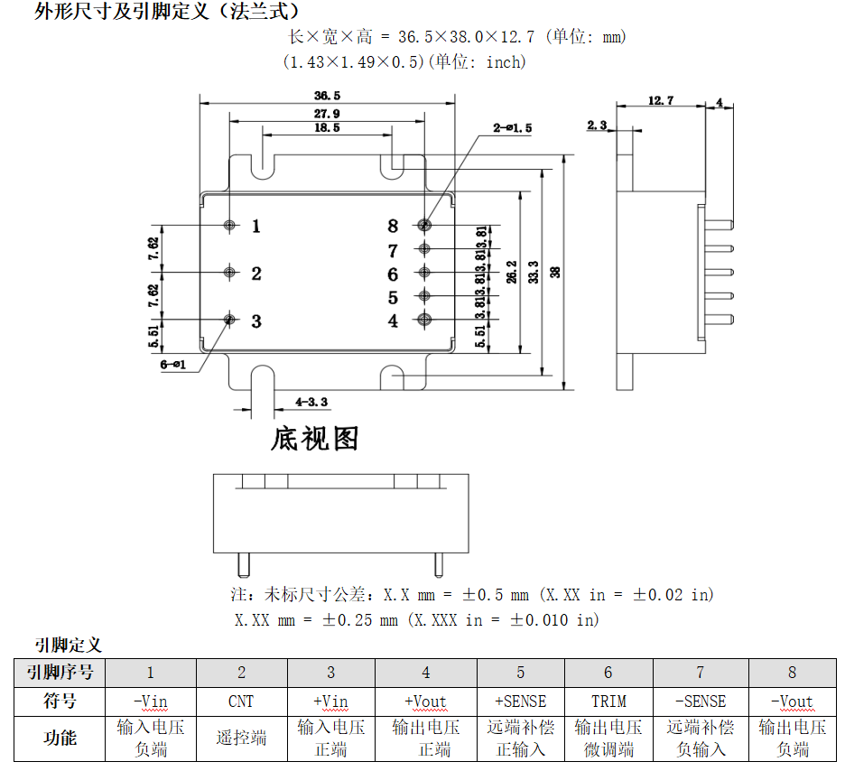 工业标准尺寸(法兰式):36.5mm×38.0mm×12.7 mm(1.43×1.49×0.5 inch)