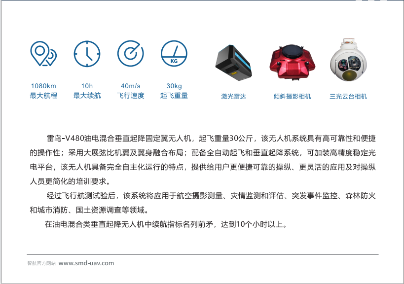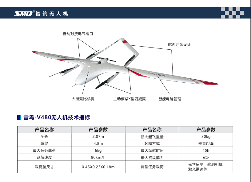 智航 雷鸟V480 油电混合垂直起降固定翼无人机