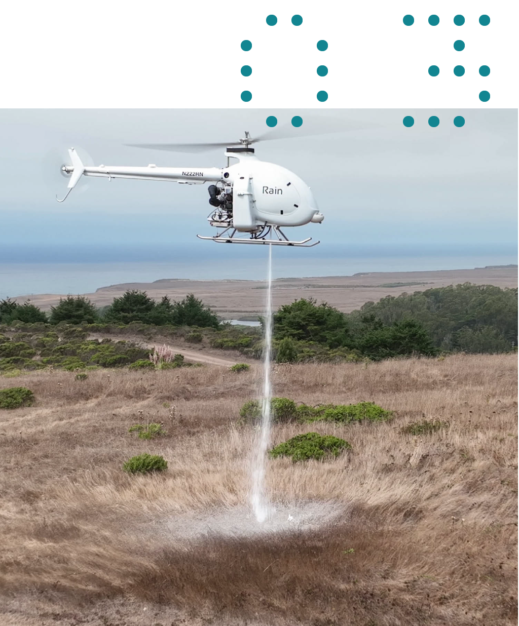 附近一架配备Rain的自主直升机发射并飞往早期探测传感器中继的坐标。当第一架自主飞机接近疑似点火时,Rain技术感知火灾,了解其行为,大小,传播方向,然后利用这些信息设计抑制策略。