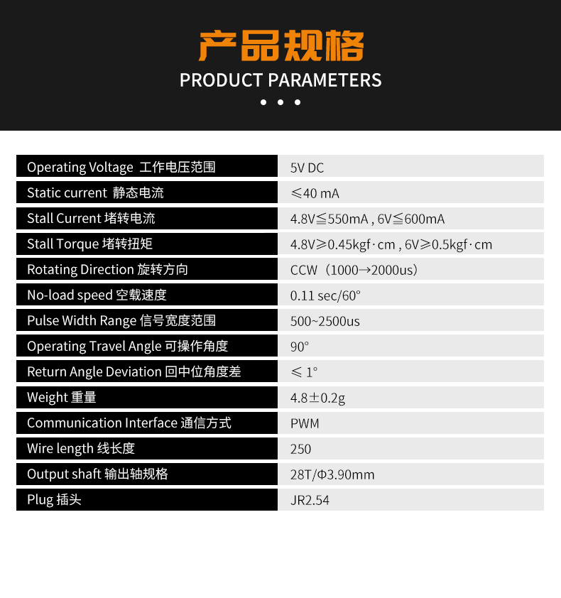 2g金属齿微型舵机 DS-M005B