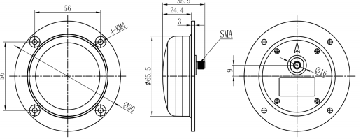 天线尺寸: φ90*36mm