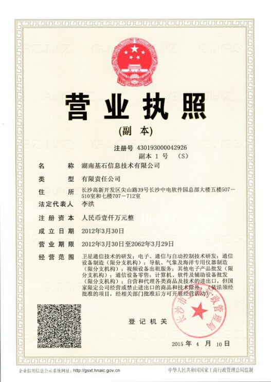 | 公司名称: | 湖南基石信息技术有限公司 | 注册地址: | 湖南省长沙市高新开发区尖山路39号中电软件园总部7楼 |