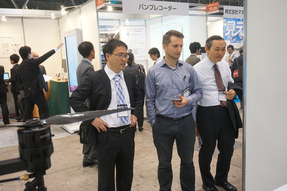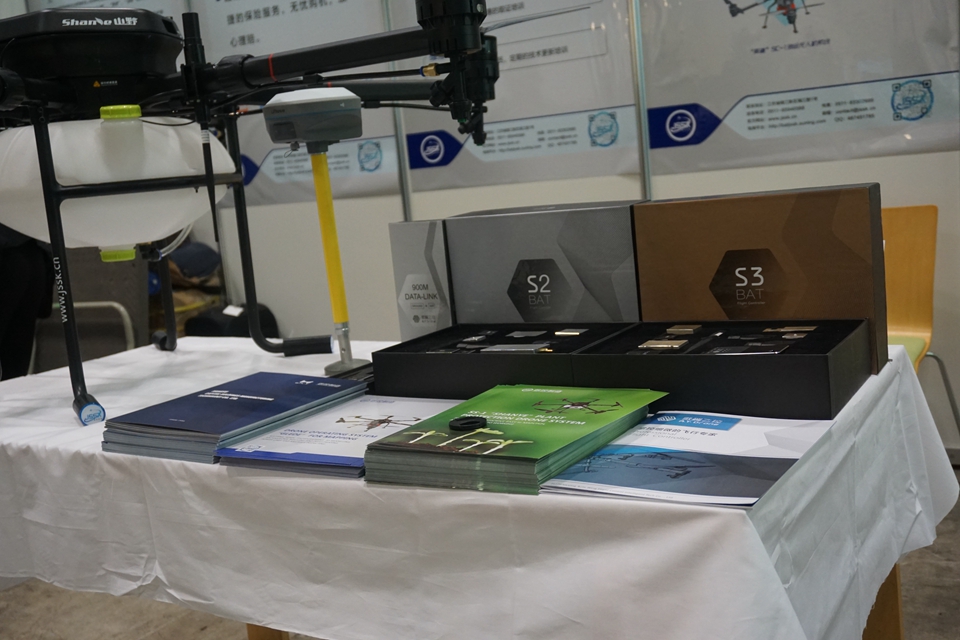 本届展览会在日本开幕,农业航空领域的300多家企业参展,数万行业伙伴汇聚在这里,其中多款农用植保无人机企业成为博览会亮点。图为来自傲翼的BAT S系列飞控携手江苏首控“山野”农用植保无人机展出,展位。