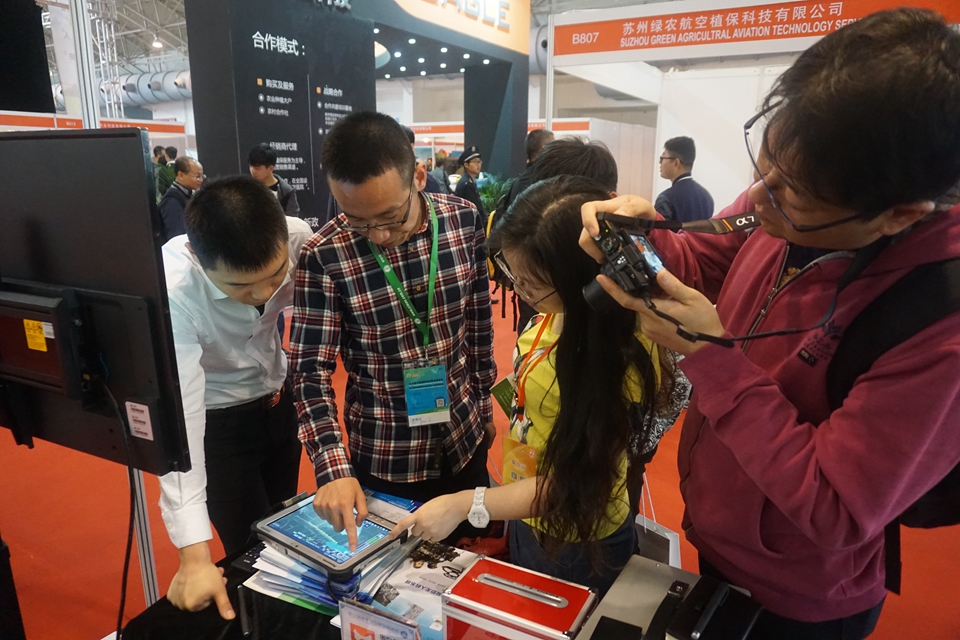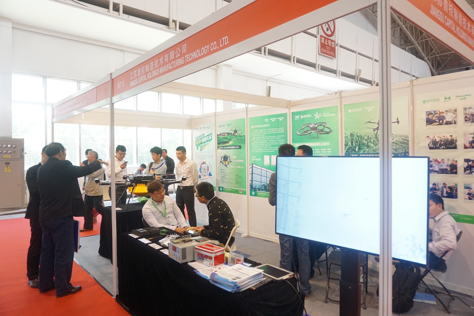 本届展览会在北京中国国际展览中心开幕,农业航空领域的300多家企业参展,数万行业伙伴汇聚在这里,其中多款农用植保无人机企业成为博览会亮点。图为来自傲翼的BAT系列飞控携手江苏首控“山野”农用植保无人机展出,展位B715、B716。
