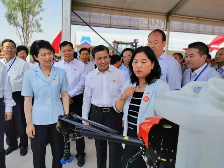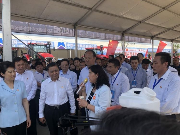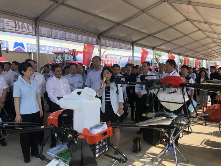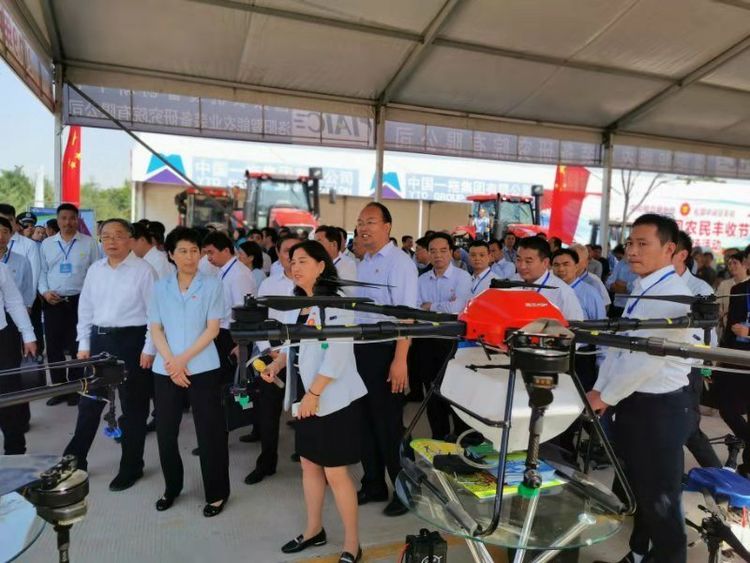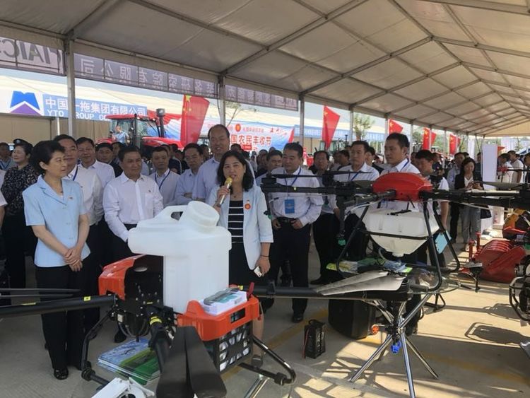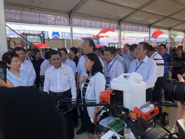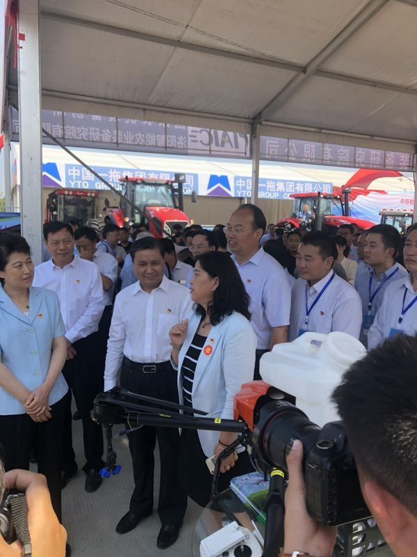 各领导一行人来到昌杰无人机展位,了解植保无人机作业相关信息。
