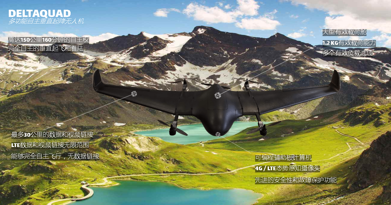 DeltaQuad是一种电动垂直起降飞翼,能够完全自主运行。它的设计基于经过验证的Skywalker X8机身,并采用了同类产品中的众多先进功能。
