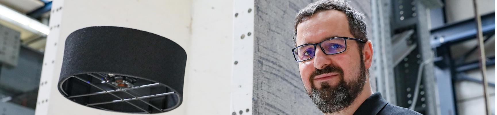 延长这些时间的一种方法是使用完全不同类型的推进系统。例如,通过将螺旋桨的数量从四个减少到两个,工程师可以使每个螺旋桨更长并且转子更有效。这也减少了所需的电量,这意味着相同尺寸的电池可以运行更长时间。但到目前为止,带有两个螺旋桨的无人机通常不太稳定,操作起来也更难。Bouabdallah的设计采用了一种环形结构 - 直径约30厘米 - 螺旋桨在中心堆叠在一起,并以相反的方向转动。他的无人机看起来更像飞碟而不是我们以前常见的机器。