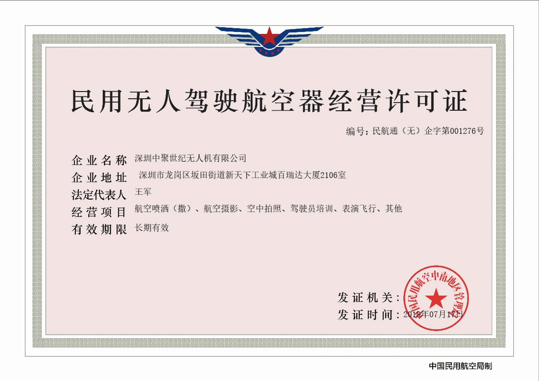 中聚世纪无人机有限公司成立于2013年,是一家集无人机研发、制造、销售与各类巡检服务于一体的深圳市高新技术企业,拥有多项专利证书、20项软件著作证书、无人机经营证书等多项资质证书。公司集聚了大批经验丰富的无人机研发人员、航飞人员以及光电专家、计算机图像甄别技术开发专家,提供各类无人机巡检服务和产品。专注中石油的各类巡检服务,以先进的技术、高质的服务成为中石油巡检服务行业的领先者。