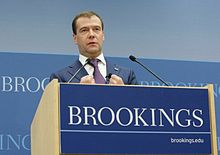 俄罗斯总统德米特里·梅德韦杰夫(Dmitry Medvedev)于2010年4月14日在布鲁金斯(Brookings)进行美国2010年核安全峰会访问。