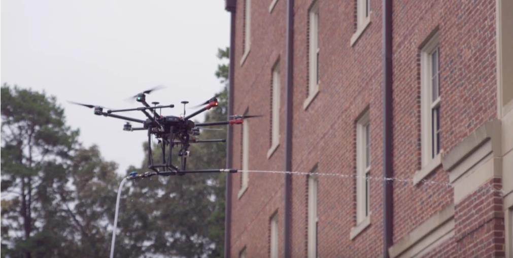 Lucid公司的无人机不使用传统的高压水枪来冲洗,而是通过喷涂清洁剂来“软洗”建筑物(无论是房屋,办公室还是校园图书馆)。该公司称他们提供的溶液是可降解的生物原料制成,即便涂抹在在砖和石灰石等表面也不会损害建筑物主体结构和材料。无人机通过操作守遥控,携带软管对外墙低压喷雾。最高可清洁高达120英尺(36米)高的建筑物,根据建筑物的设计,大约有10到12层楼高。