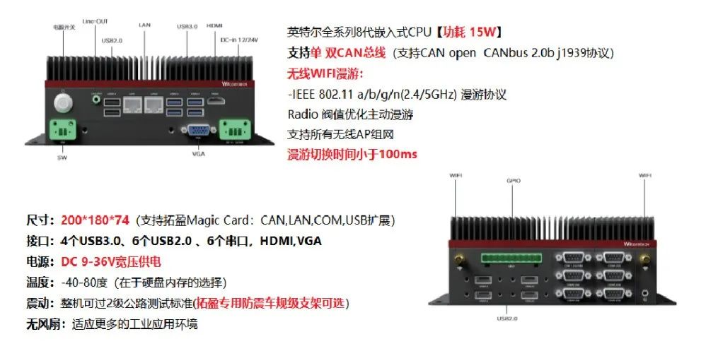 拓盈科技WELCOMTECH的TRK-7000系列,是一款配合移动机器人与低速无人车行业需求设计,具备高度集成无风扇智能计算机控制器。该系列产品支持宽温,多粉尘的恶劣环境的性能;支持无线漫游切换和CAN总线的集成,支持多COM、USB等,满足不同传感器的接入。
