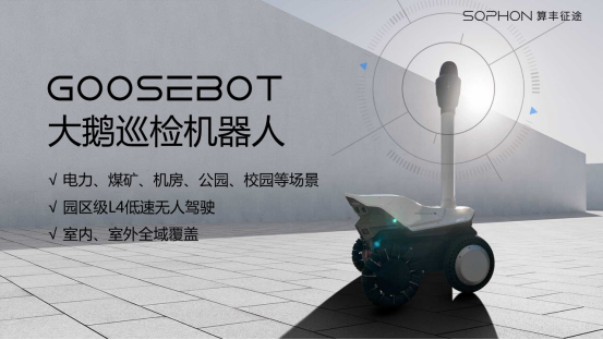 北京算丰征途科技有限公司专注于L4低速无人驾驶领域,其自主研发的“Sophon盘古无人驾驶系统”经过全新的迭代升级,具备厘米级高精度定位、公里级路径规划、毫秒级自主避障等特点。搭载这套无人驾驶系统,公司推出了新一代的GOOSEBOT大鹅巡检机器人。