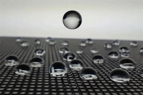通过微纳复合结构形成气膜,使水珠无法附着并迅速滚落,杜绝连续水膜形成。