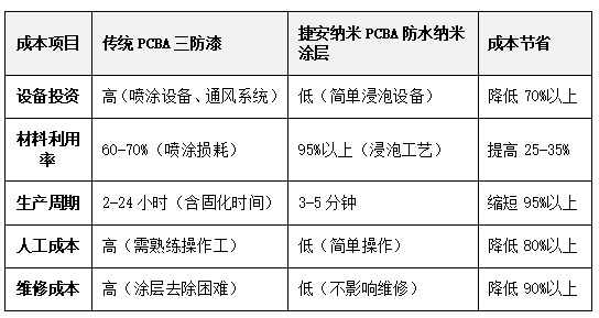 二、捷安纳米PCBA防水纳米涂层的成本优势分析