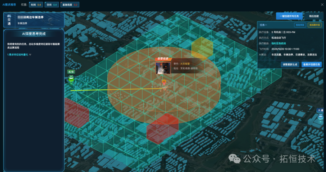 在实际应用中,该体系已展现出显著的实战价值。在重大活动安保与社会治安巡查中,系统可自动规划无人机进行多时段、同角度正射采集,通过时序比对智能识别异常。在交通安全巡查中,无人机可抵近观察、多视角回传,动态支撑指挥决策。在侦查破案场景中,系统支持从任务下发、自动巡检到AI研判的闭环,并将解译结果实时同步至执法终端,提升现场处置精准度。