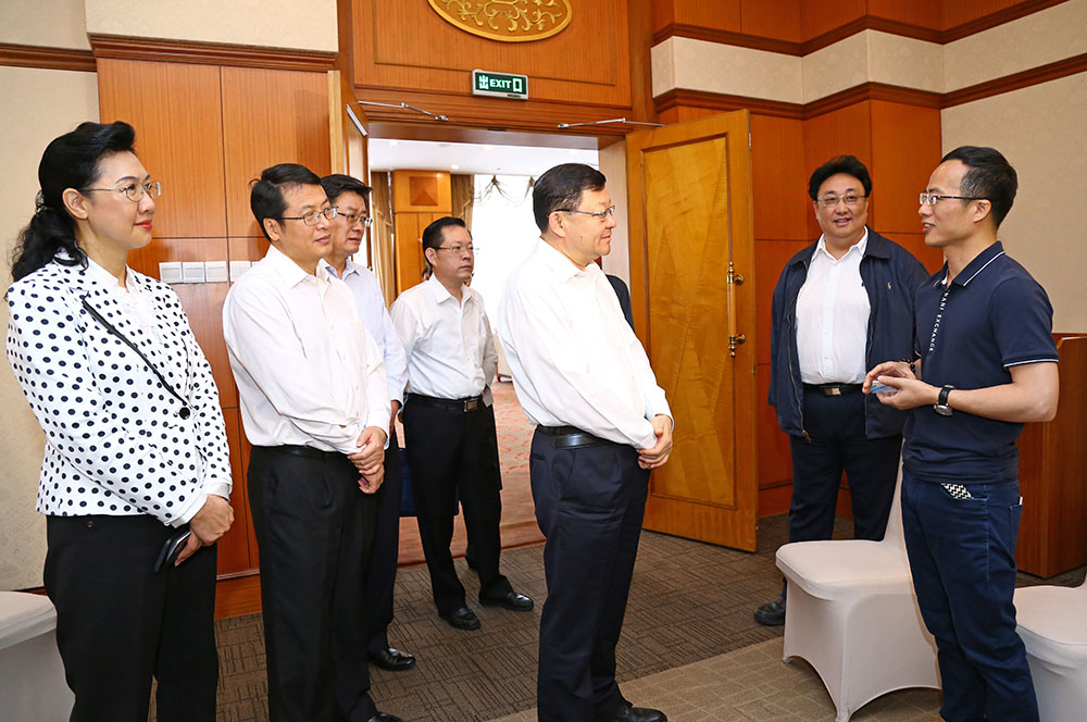 2017年5月李才圣与柔宇科技刘自鸿等受邀在五洲宾馆参加深圳市委王伟中书记科技者座谈会,并受到王伟中书记接见与交流合影