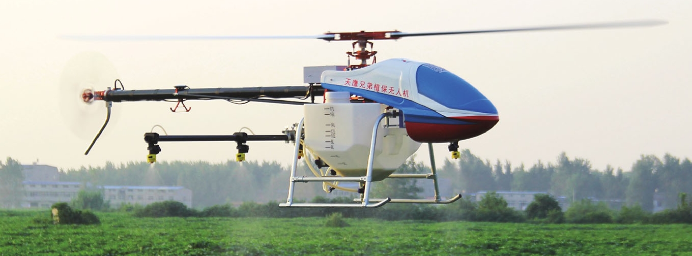 公司推广的大载荷燃 油动力无人飞机田鹰-999载重量达35公斤,续航时间长,可实现完全程控飞行。该机型作业效率高,采用先进的差分GPS系统,作业定位更准确,避免多 喷、漏喷等缺陷出现,自主飞行能够在设定区域内自动飞行喷药,喷药量随飞行速度变化而调整,保证每平方米喷药量一致,智能的航线规划功能省去人工飞行的劳 累。同时具有故障自检测功能,维护操作简单易学。